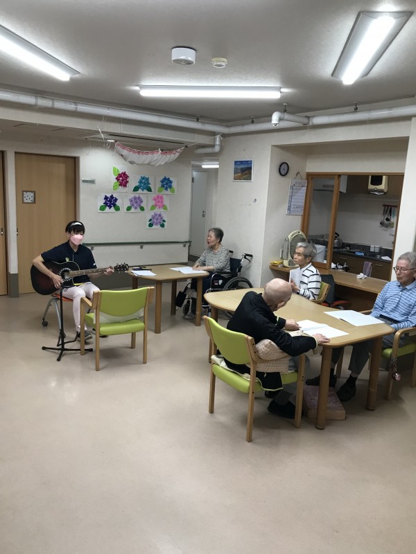 こんにちは(≧◇≦ グループホームみんなの家清河寺2階フロアです。お誕生日会に因んで、職員のギター演奏で皆さんで歌いました(o^―^o)