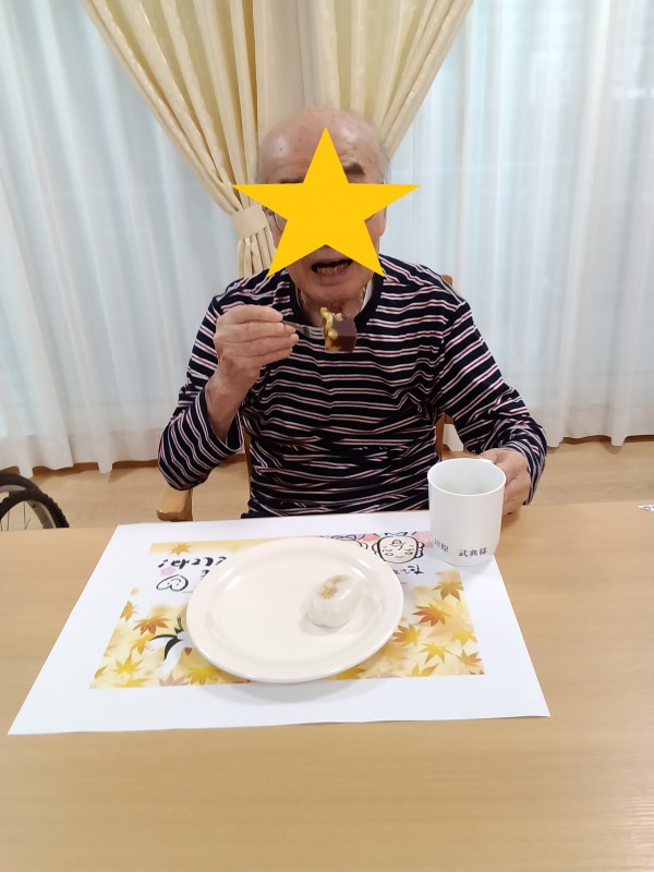紅白饅頭と芋羊羹をみんなで一緒に美味しくいただきました。
