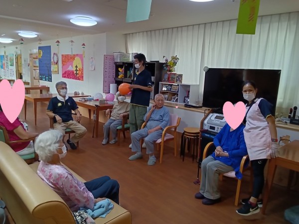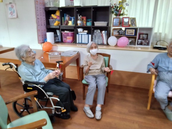 今年の敬老会は旗上げと風船バレーをしました。