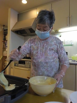 ホットプレートを出して、パンケーキ作り(^_-)-☆