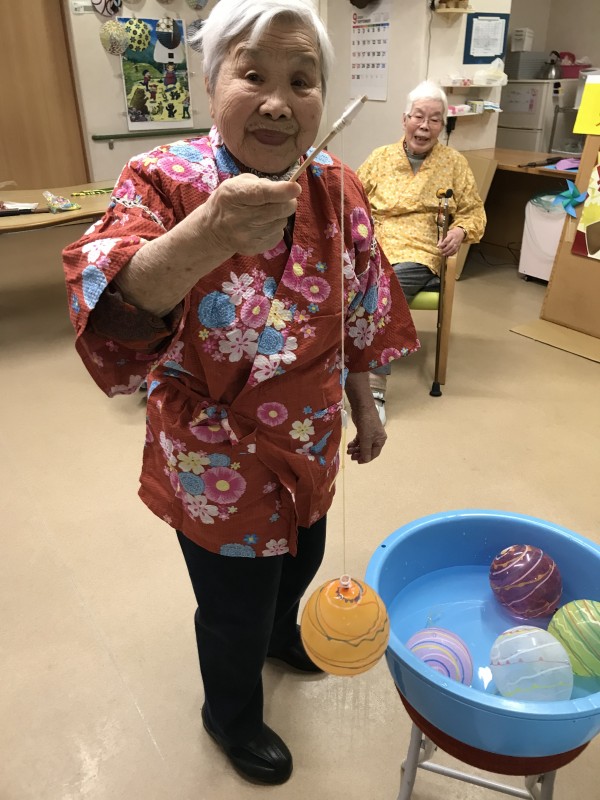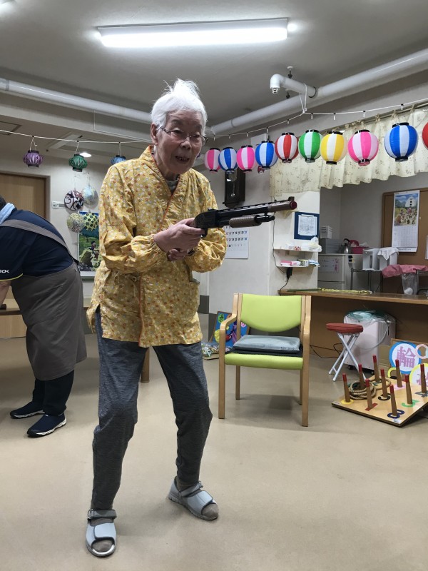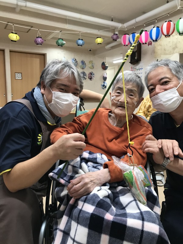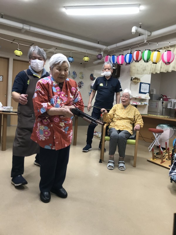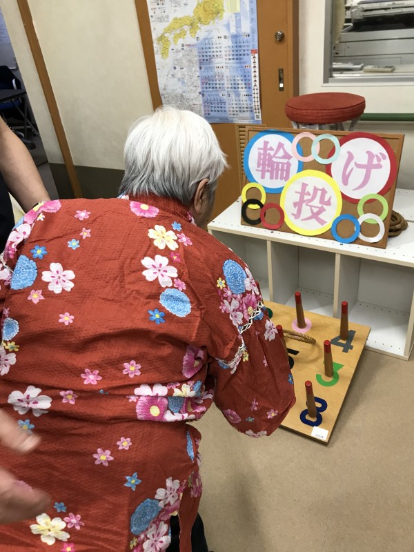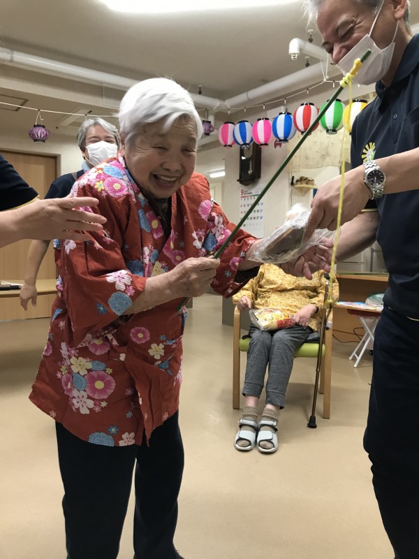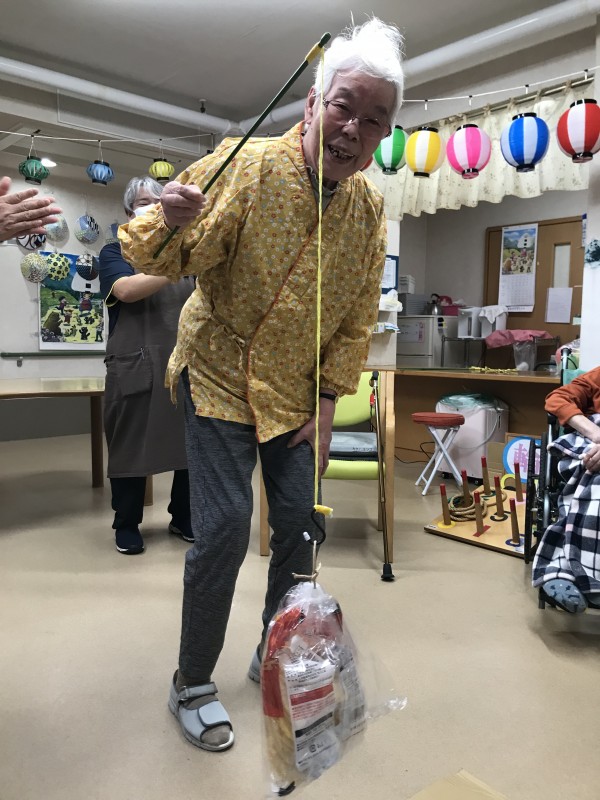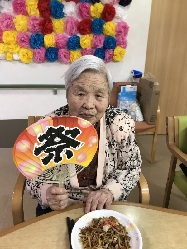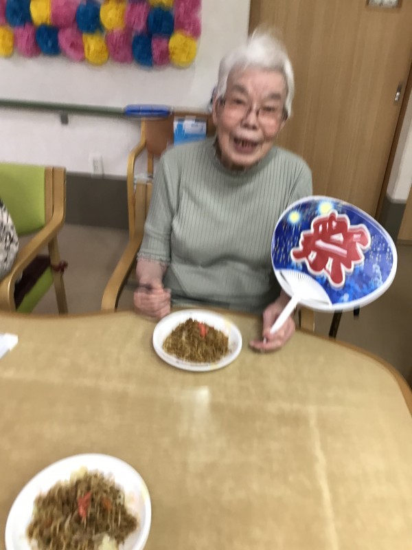 利用者様もヨーヨーやお菓子が釣れると大変喜ばれ焼きそばも手作りで熱々出来立てを提供