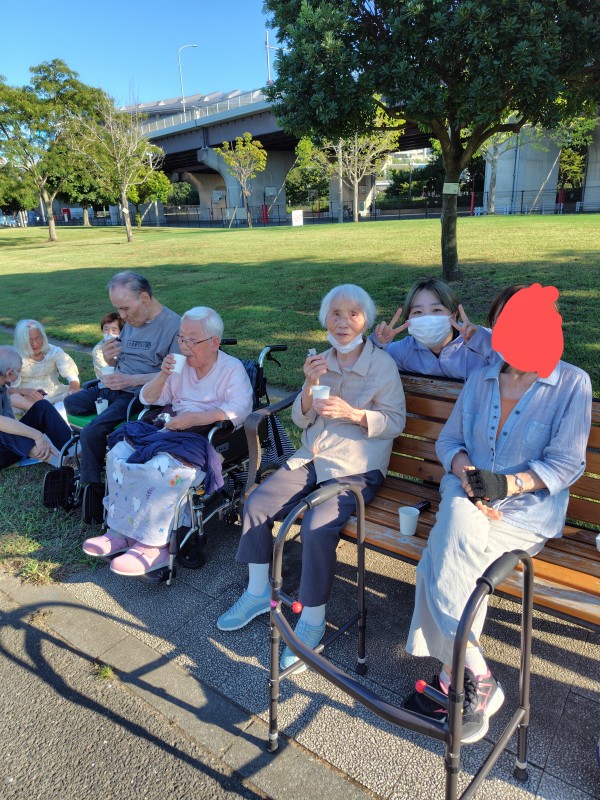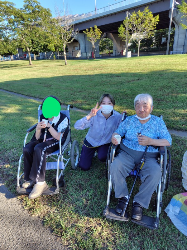先日、デイサービス近くの大きな公園に散歩に遊びに行きました(*^-^*)