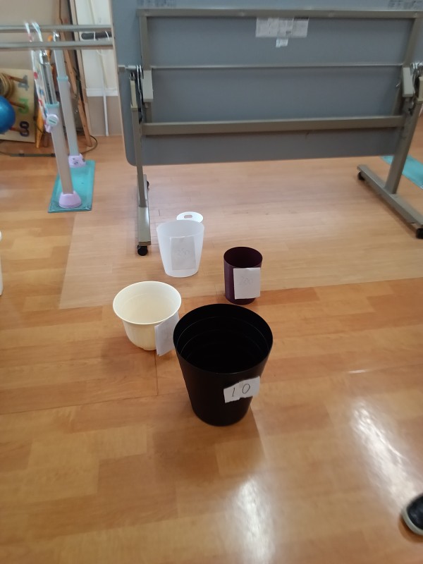 その辺にある物の重さを、皆さんに持ってもらって重さを言っていきます。最後に重さを測って一番近い方が勝ちです。