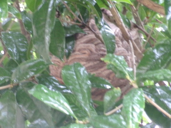 最近、どこからともなくハチが飛んできていたので、勝手口側の植え込みを確認したところ、