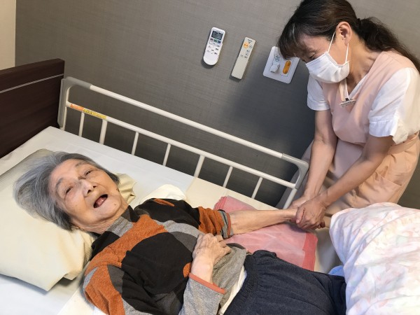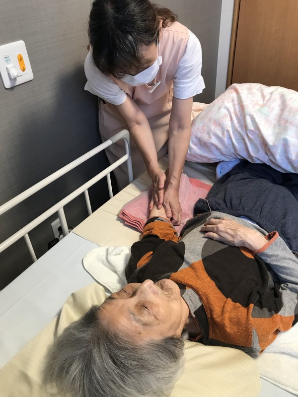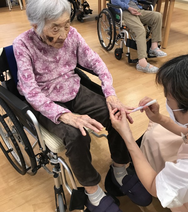 顔、手、足のマッサージ、ネイルや口紅を塗って可愛くしてくださったり、皆様には大変喜ばれています。