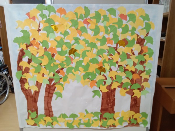 デイの玄関の近くに、イチョウの木を飾りました( *´艸`)