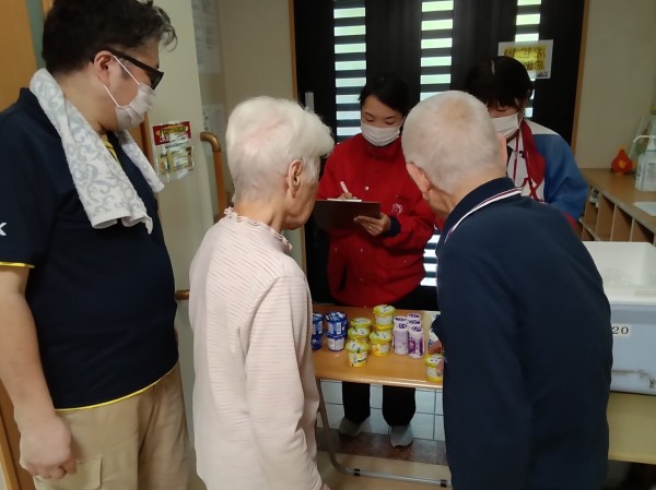 普段もおやつでヨーグルトを提供する日もございますが、こういった形でご自分で選ばれる、ということが皆様の日々の楽しみになっております♪