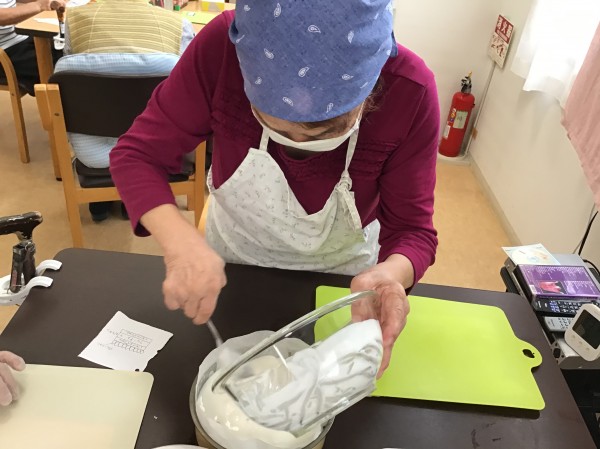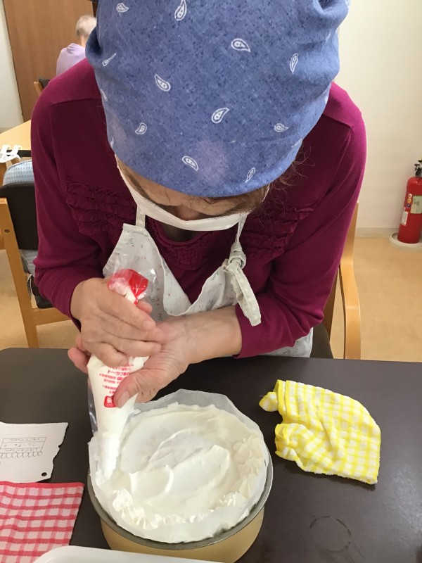 今回ケーキ作りをお手伝いしていただいたのが、誕生日のご本人様と料理教室をしていたという利用者様です。