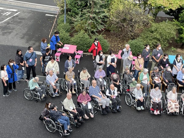 施設内に飾った提灯ですが、職員が空き時間を利用して作っていたのですが間に合わず、1階の入居者様にもお手伝いして頂きました。