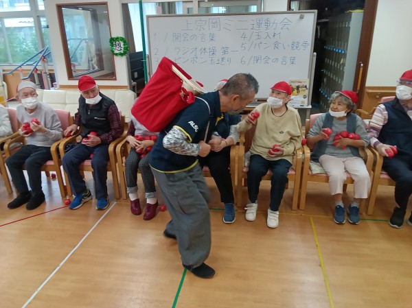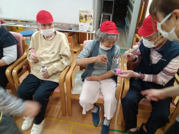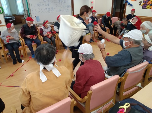 ピンポン玉送り、玉入れ、パン食い競争を楽しみました。