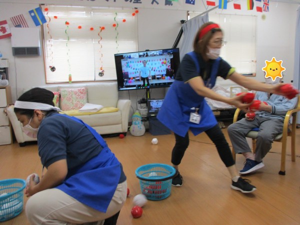 赤組、白組・・・玉を拾う職員も必死です!(^^♪
