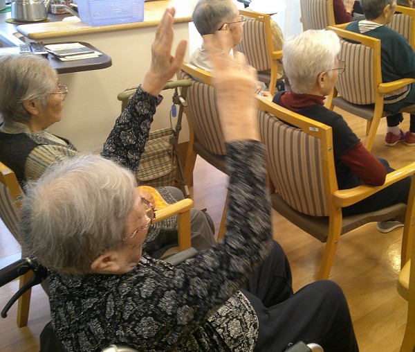 入居者の皆様は、手拍子をしたり、一緒に踊ったりと、とても楽しまれておりました。
