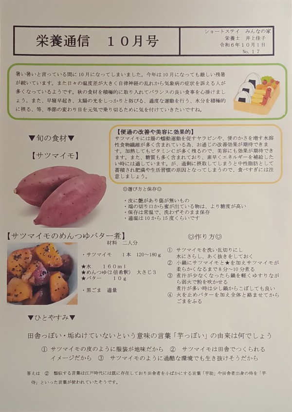 *** 栄養通信 10月号 ***(栄養士 井上佳子)