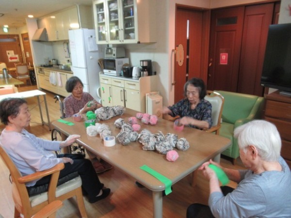 玉入れや旗揚げ等おこなわれましたが、使用した道具も皆さんに作って頂きました(^^♪