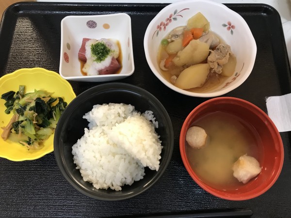 おやつがおはぎだったので夕食は皆さん残されるかな〜と思ったのですが、今日の夕食は人気メニューの「鶏じゃが」に「まぐろの山かけ」でした♡