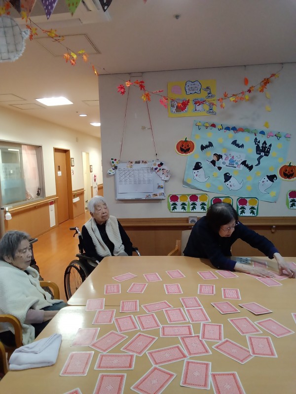 レクの様子です!みんなでトランプ、どれにしようか考え中☺