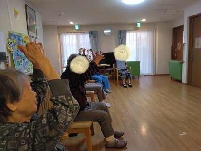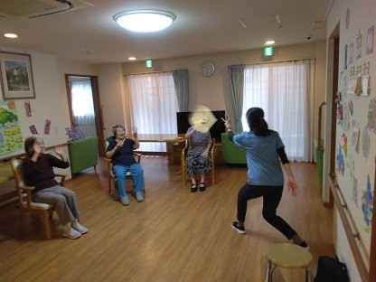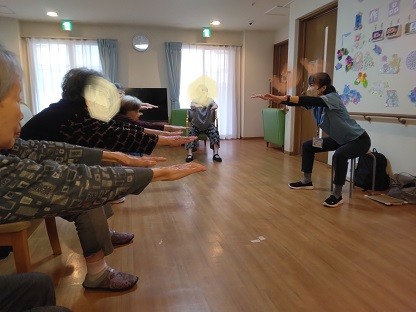 指導員がホームに来て、1階、2階それぞれ約30分ずつ体操をおこないました。
