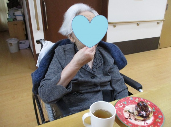 散歩から戻られ、ハッピーバースデーを歌ってお祝いした後に召し上がっていただきました!