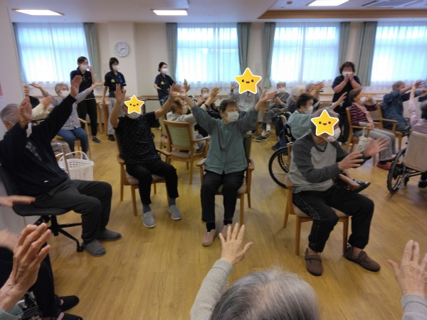 最後はジェンガに合わせて座ったままフォークダンスです!