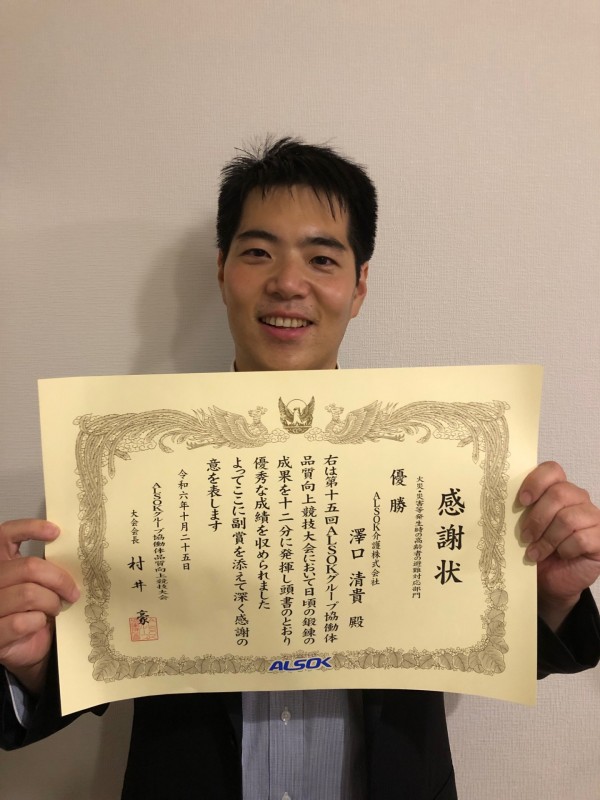 10月25日にALSOKグループ品質向上競技大会が行われ、会社を代表してすこや家・大宮佐知川ホーム長澤口が出場することとなりました。