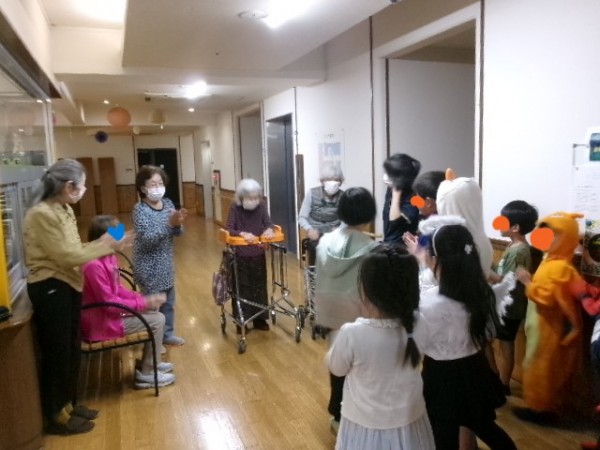 先日、近隣の子どもたちがハロウィンの仮装をして、皆さまに会いに来てくださりました(^^♪