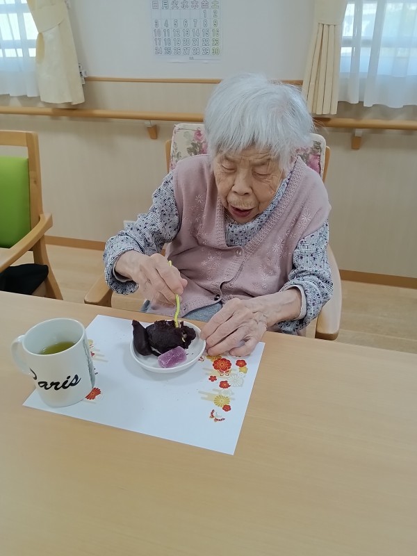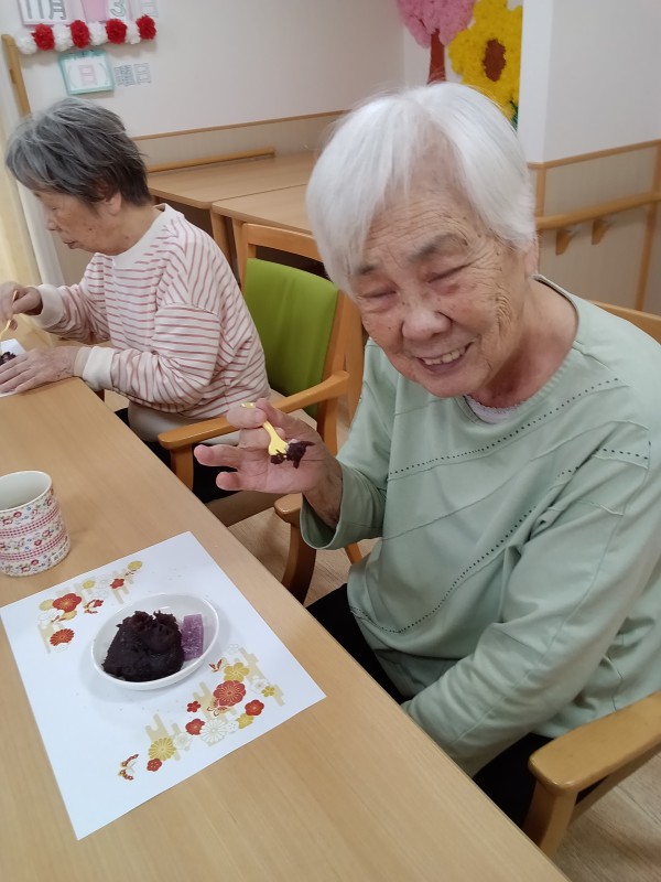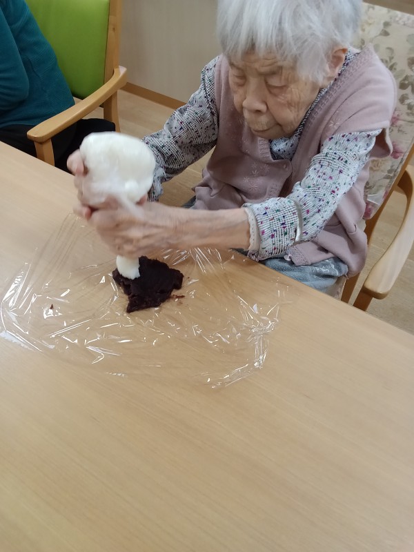 今日はおやつレクを行いました。メニューは「おはぎ」です!