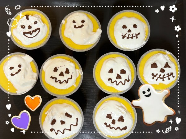 おばけ達をデコレーションした★かぼちゃプリンでーす