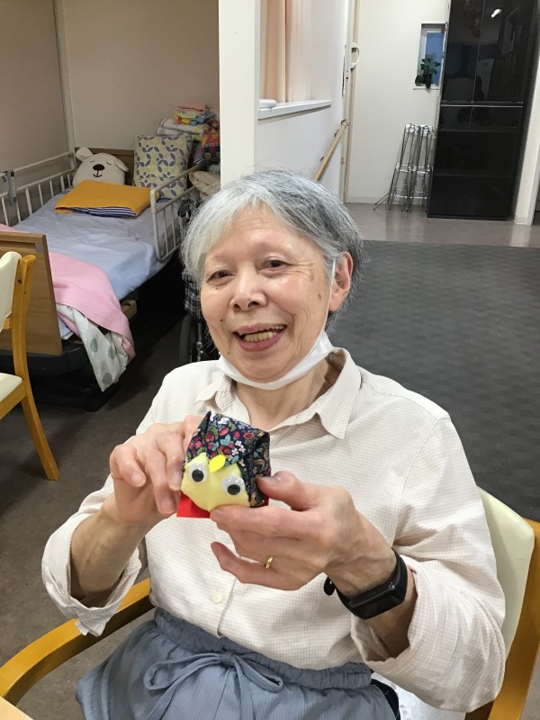 完成したフクロウの人形を持ちとても喜ばれていました。