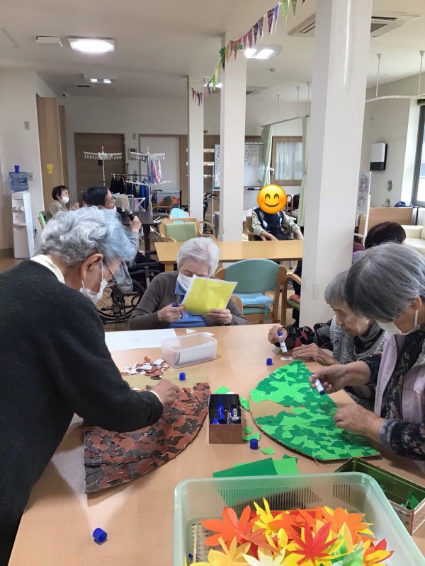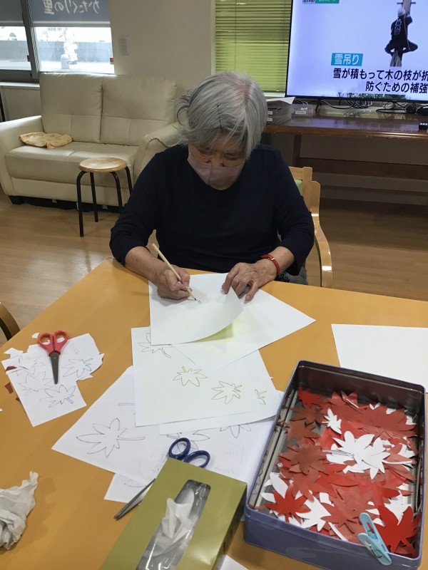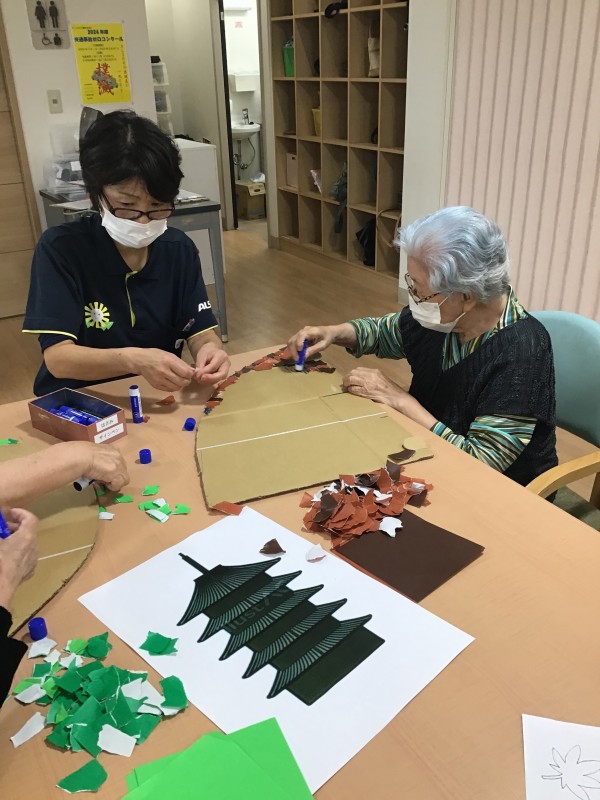 千切り絵の部分と切り絵、折り紙を組み合わせて