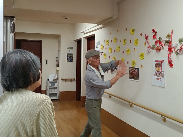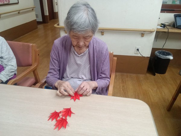 ご利用者様にお手伝いいただき、紅葉の制作をしました。