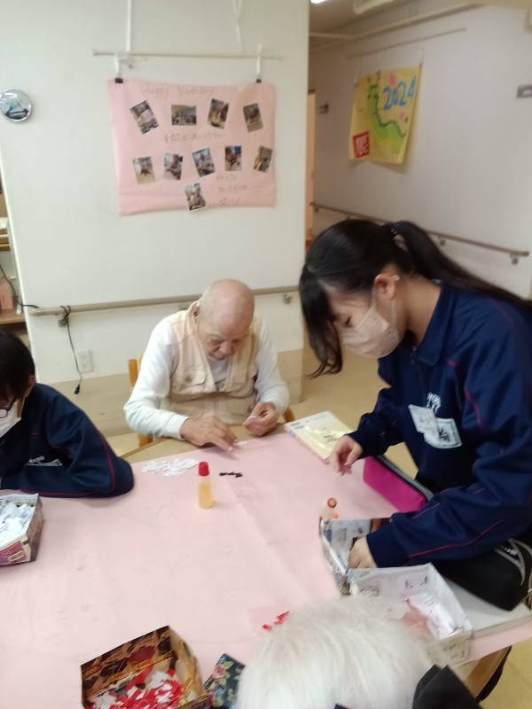 ご利用者様と一緒にちぎり絵をやって下さいました。
