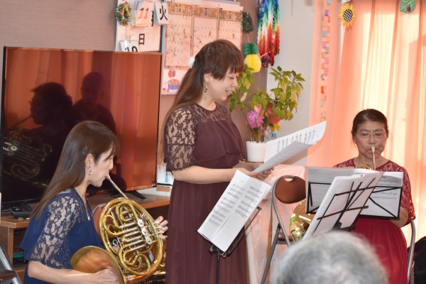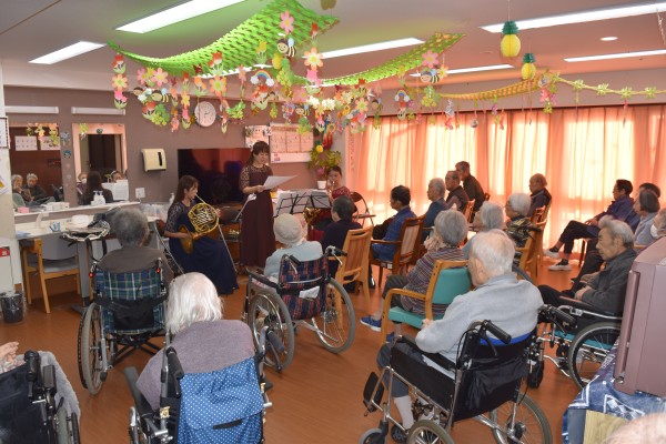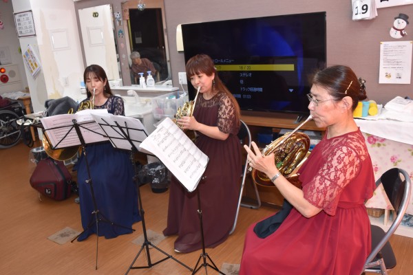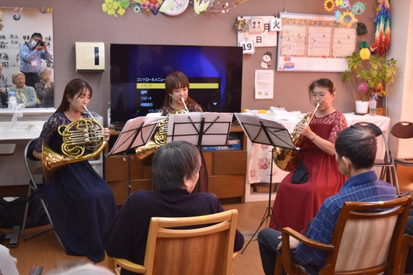 金管楽器の演奏はご入居者様のお腹に大きく響く音楽なので