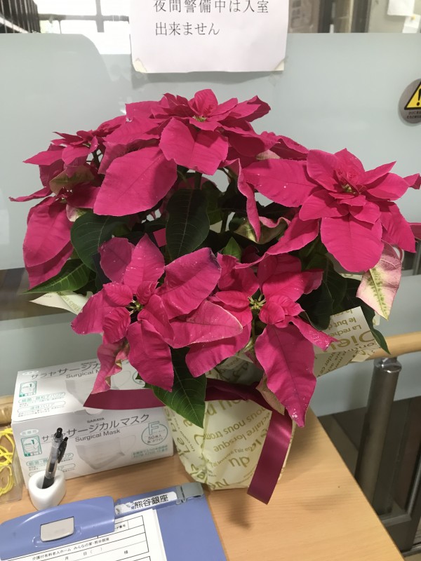 玄関には、利用者様より頂いたプリンセチアも飾らせて頂いております!