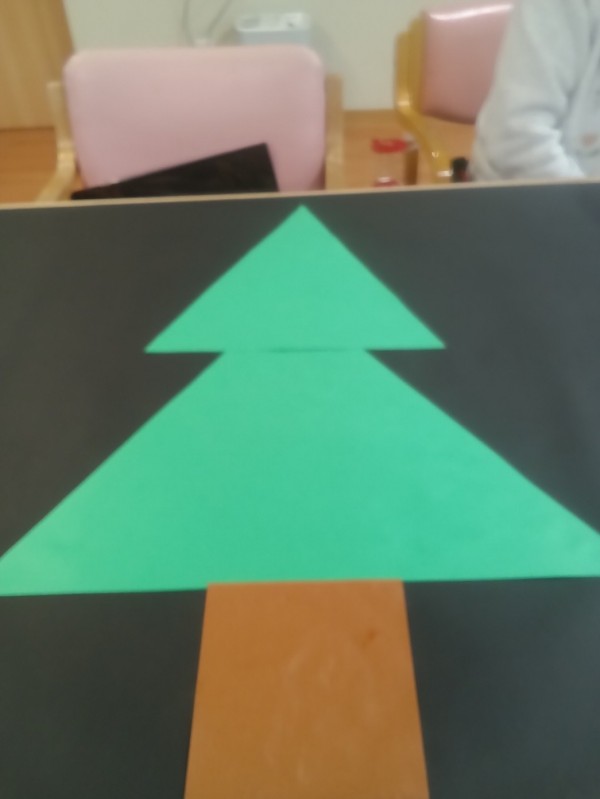 ツリー(壁画)の飾りつけ。