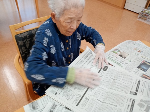 スタッフが新聞畳みをしていると