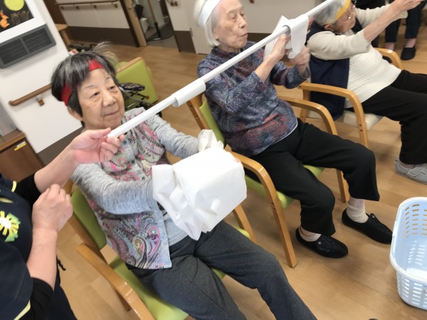 次は、誰が一番早く巻き取れるかを競います。