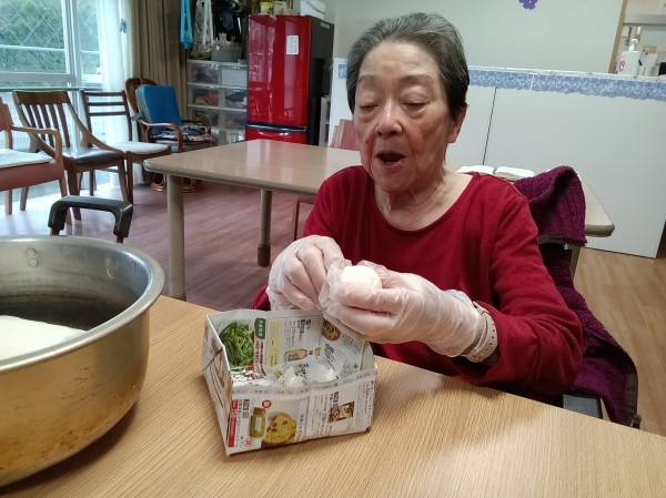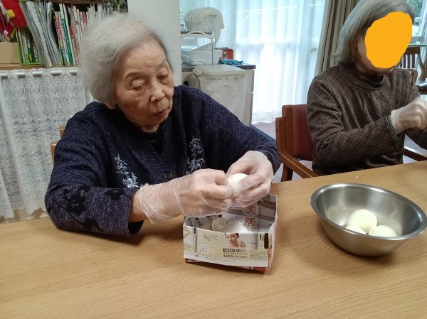 卵の殻むきをして下さっています!
