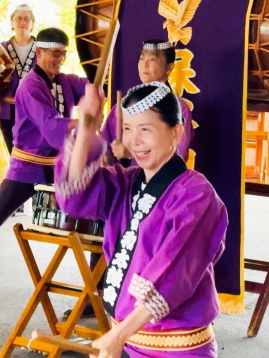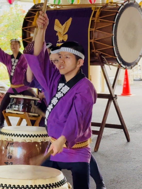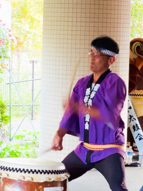 素敵な笑顔で太鼓を叩かれていました!でもすごい迫力!演奏後、太鼓の叩き方を教わりました!