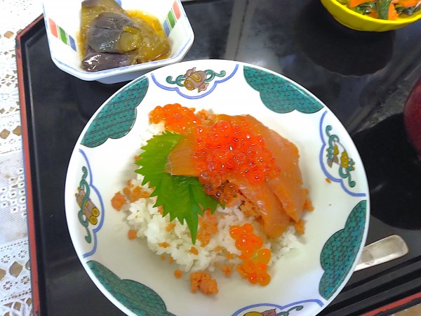 今回は、昼食に「サーモンいくら丼」をお出しいたしました!