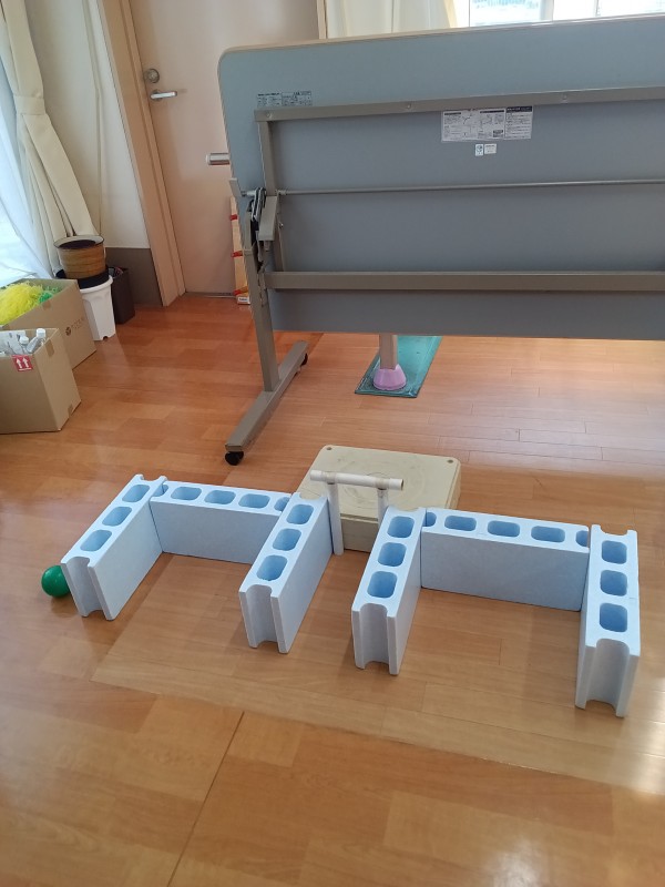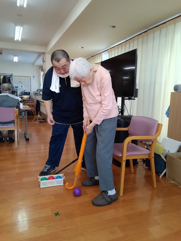 今日のレクは、パターゴルフです。1人4球打っています。