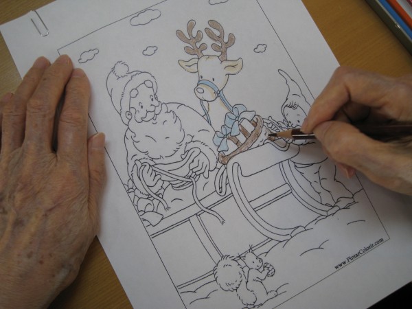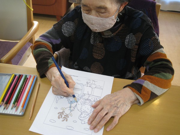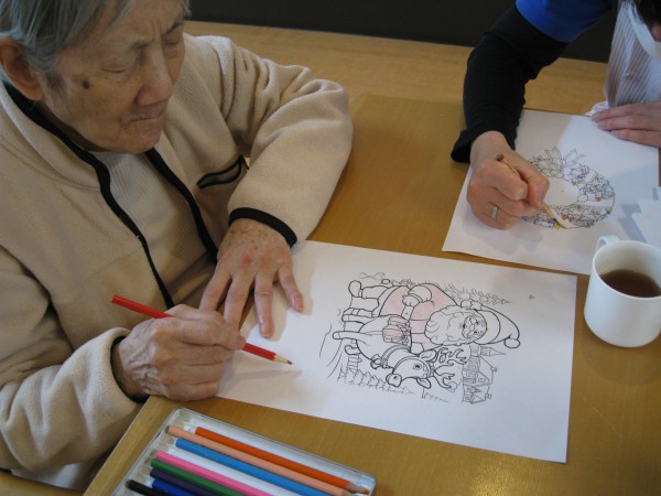 2階のみなさんはクリスマスに向けて塗り絵を行っています☆彡