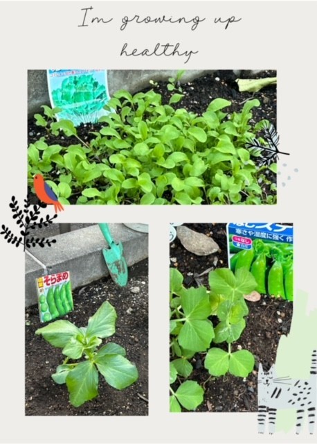 花壇の菜園のお野菜たちも寒そうですが、とっても元気にすくすくと育っています。