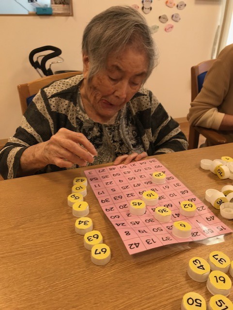 ランダムに数字が書きこまれているのでとっても頭を使うレクリエーションになっているではありませんか。