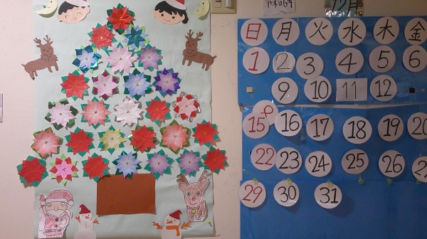 折り紙でツリーを作ったり、周りにサンタやトナカイ