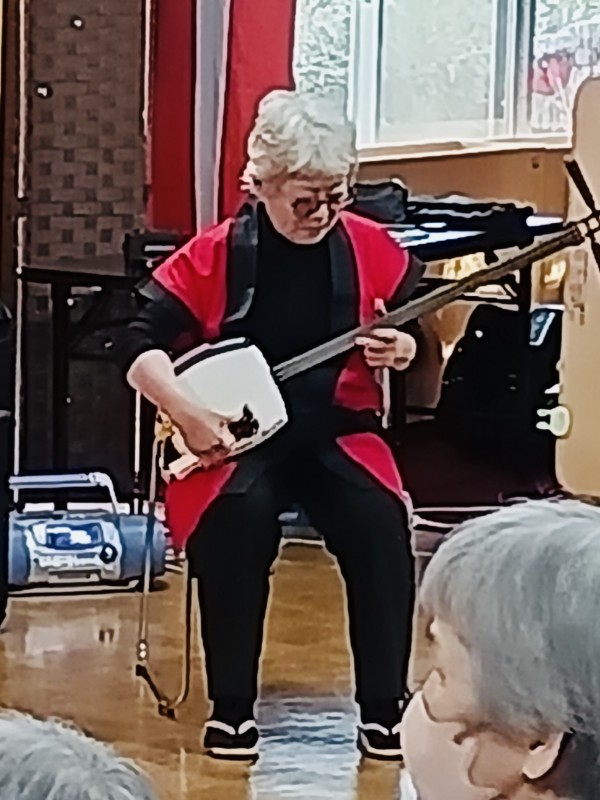 島根県の伝統楽器の「銭太鼓」を使った踊りと三味線の演奏を披露して下さいました。