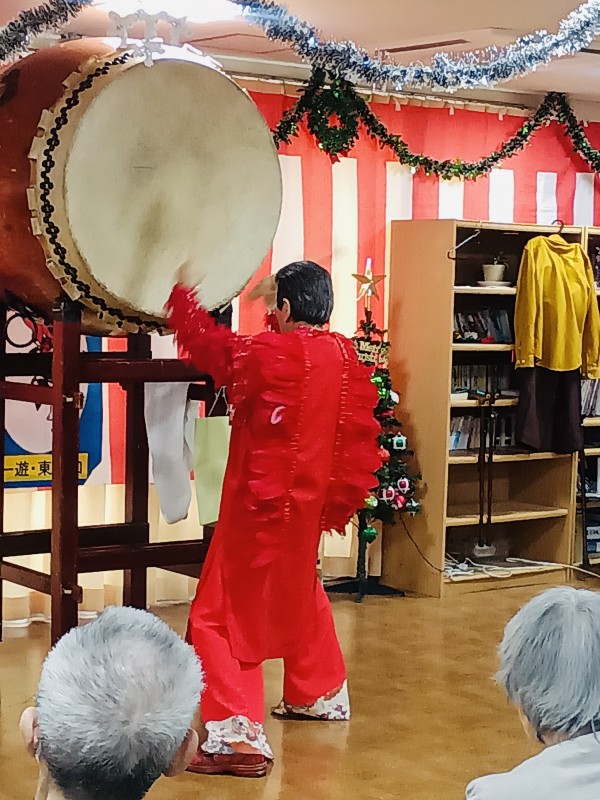 何より和太鼓が天井までの高さがある時点で、見た目にも大迫力でした\(◎o◎)/!(玄関で「入らないかもしれない……」とヒヤヒヤしたのと、職員6人でヒヤヒヤしながら上まで持ち上げたのはまた別のお話(笑))