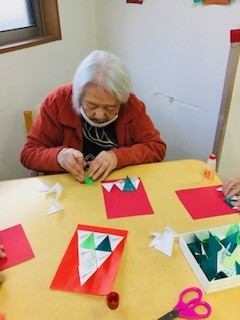 三角形がたったの9枚で、かわいいツリーができました☆☆