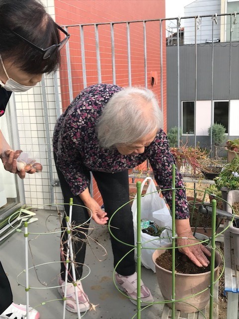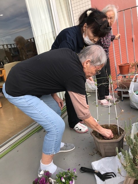 今回は、花を植えた様子と、物作りレクの様子をお送りします。