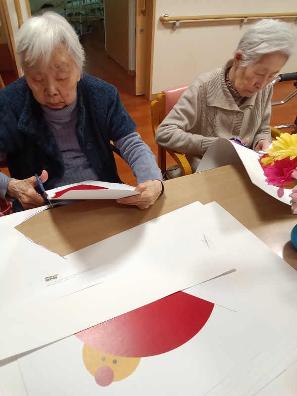 本日はクリスマス会に向けてのサンタ帽子の制作です!
