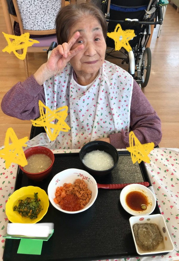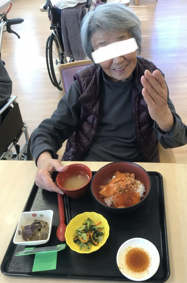 まず3周年の前日のお昼ご飯が特別だったのでご利用者様の嬉しそうな笑顔をご紹介したいと思います!!